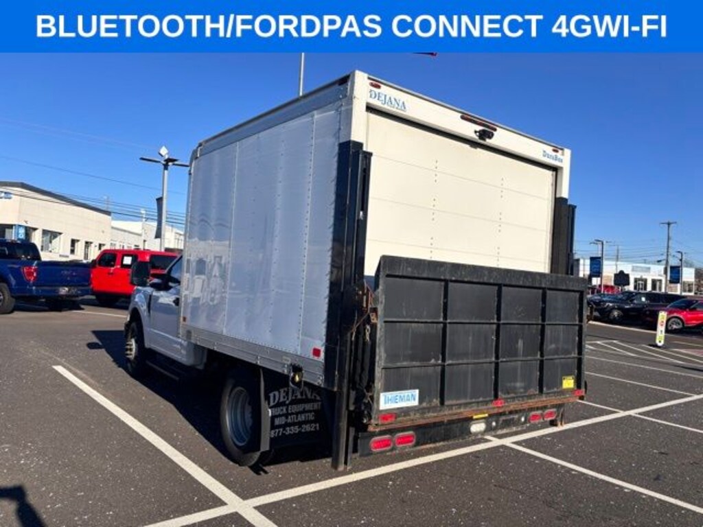 3.73 Axle Ratio, 4 Speakers, 4-Wheel Disc Brakes, ABS brakes, Air Conditioning, AM/FM radio, AM/FM Stereo w/MP3 Player, Brake assist, Compass, Delay-off headlights, Dual front impact airbags, Dual front side impact airbags, Dual rear wheels, Emergency communication system: SYNC 911 Assist, Front anti-roll bar, Front Center Armrest w/Storage, Front reading lights, Front wheel independent suspension, Fully automatic headlights, GVWR: 14,000 lb Payload Package, HD Vinyl 40/20/40 Split Bench Seat, Low tire pressure warning, Order Code 640A, Outside temperature display, Overhead airbag, Passenger cancellable airbag, Passenger vanity mirror, Platform Running Boards, Power steering, Rear anti-roll bar, Rear View Camera & Prep Kit, Steering wheel mounted audio controls, SYNC Communications & Entertainment System, Tachometer, Telescoping steering wheel, Tilt steering wheel, Traction control, Trip computer, Variably intermittent wipers.
